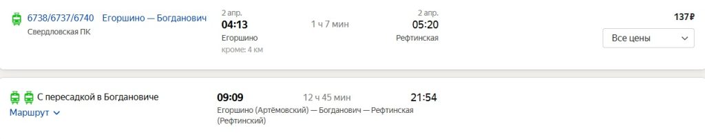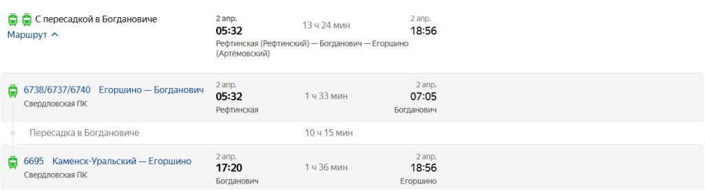 Как доехать из Рефтинского до Егоршино после 1 апреля? Оказывается, железнодорожники все продумали. Это все можно увидеть на сайте «Расписания». Если вам потребовалось в Артемовский (или куда-то через этот город), то нужно встать еще до восхода солнца, часика в 4. Плотно позавтракайте: в дороге не кормят.