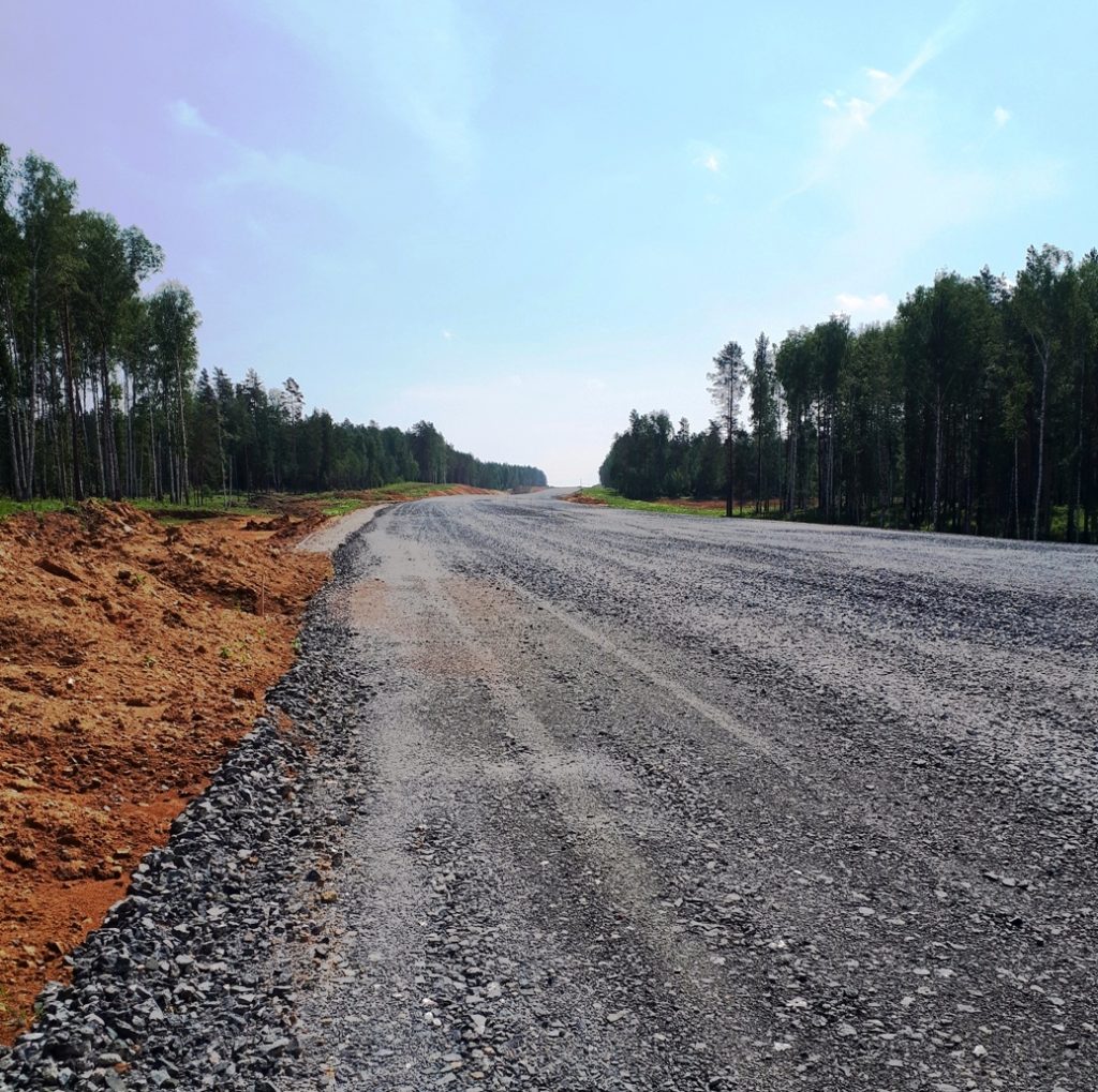 Новый участок дороги, который на сегодняшний день строится, видно с перекрёстка дороги, когда мы едем из Екатеринбурга в Асбест, на повороте, впереди большое открытое пространство. На перекрестке дорог, слева и справа отсыпанные и спланированные площадки и окинув пространство опытным глазом, без сомнения узнаем породу с наших асбестовых отвалов.