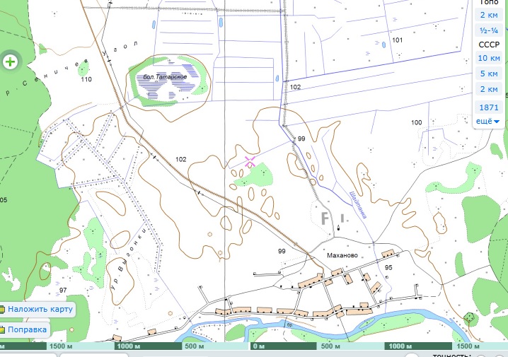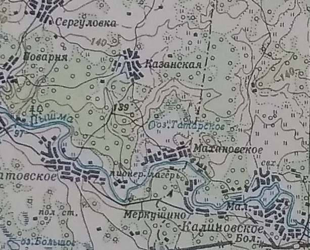 Действительно, нашлось озеро Татарское и речка Шайтанка, оказывается ее можно увидеть и на современных картах. Район, конечно, измучен мелиорацией до неузнаваемости.