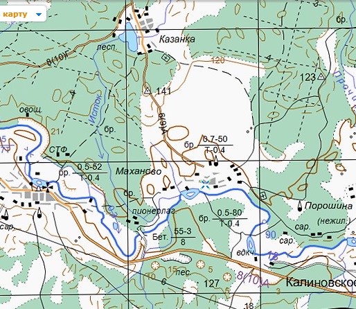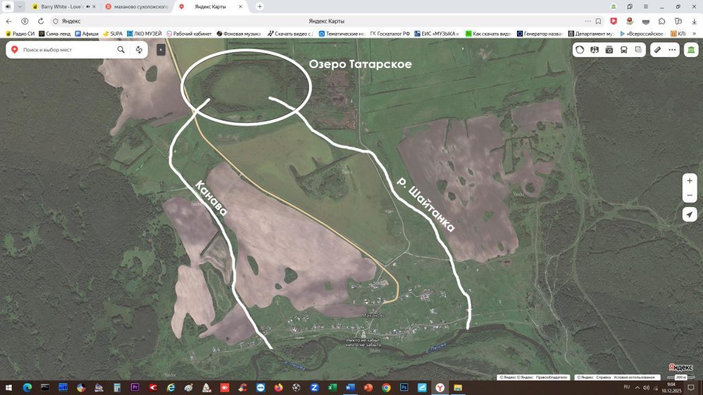 «Это другая речка, не Исток. Исток вытекает или мимо протекает из Казанского озера. А речка Шайтанка, совсем маленькая, брала начало из Татарского озера. Сейчас этого озера уже нет. То есть и речки тоже нет. Весной по канавке ручеек бежит. Хрущев кукурузу садил, мелиоративные работы проводили и осушили озеро: провели канаву. Потом там велись торфоразработки. На карте примерно это так…».