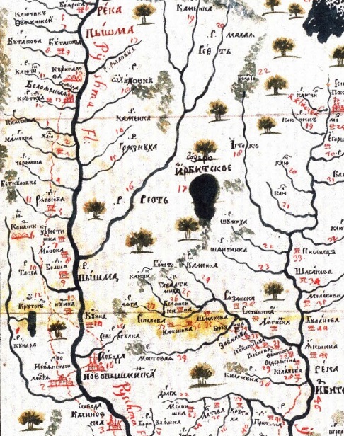 2. Не все существовавшие поселения отображены на чертежах. Не показаны деревни Шата и Ирбитские вершины, хотя они зафиксированы переписью 1705 г (в них уже по 11 дворов).