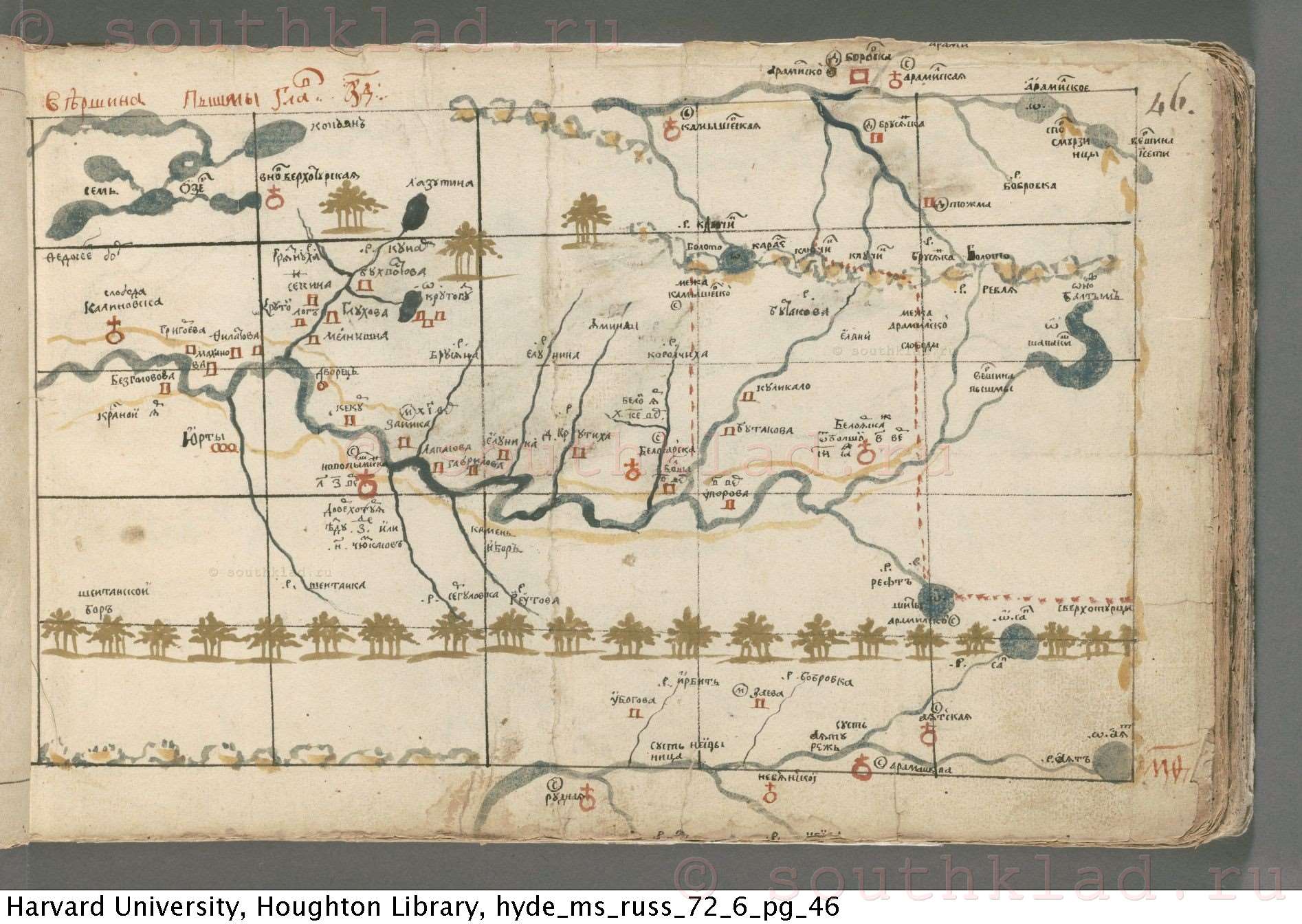 [10] Хорографическая чертежная книга Сибири С. У. Ремезова (1697-1711) / Фонд «Возрождение Тобольска». — Тобольск : Фонд «Возрождение Тобольска», 2011 .Л.46