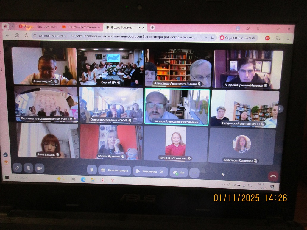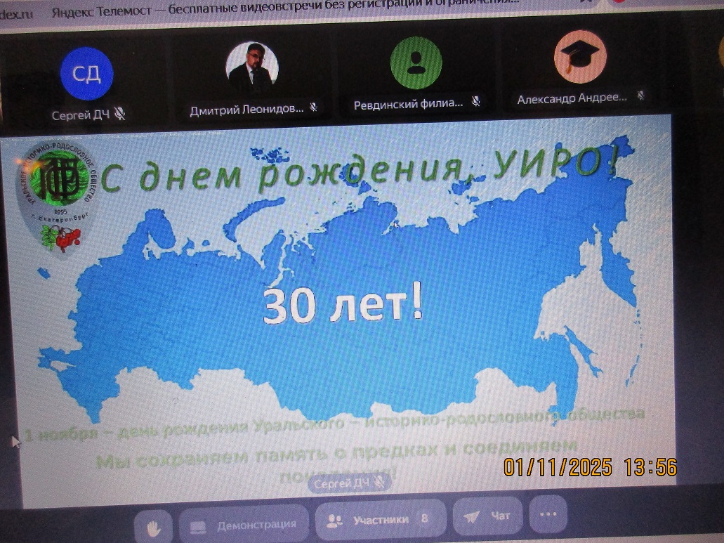 1 ноября состоялся телемост, посвященный 30 летию УИРО. От имени Рефтинского отделения УИРО поздравил коллег с юбилеем. УИРО систематизирует жизнь исследователей, наполняет ее смыслами. Организация стимулирует творчество, дает возможность представить свои исследования коллегам, ведет к малым и большим открытиям.